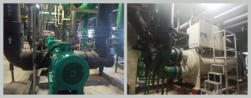 采用高效變頻主機(jī)汰換老舊機(jī)組,更新冷凍泵、冷卻泵并加裝變頻控制;升級冷卻塔填料,電機(jī)增設(shè)變頻調(diào)節(jié);優(yōu)化改造冷卻水、冷凍水管道并配置電動(dòng)閥門。整體提升系統(tǒng)能效與調(diào)節(jié)靈活性,為精細(xì)化運(yùn)行管理奠定硬件基礎(chǔ)。