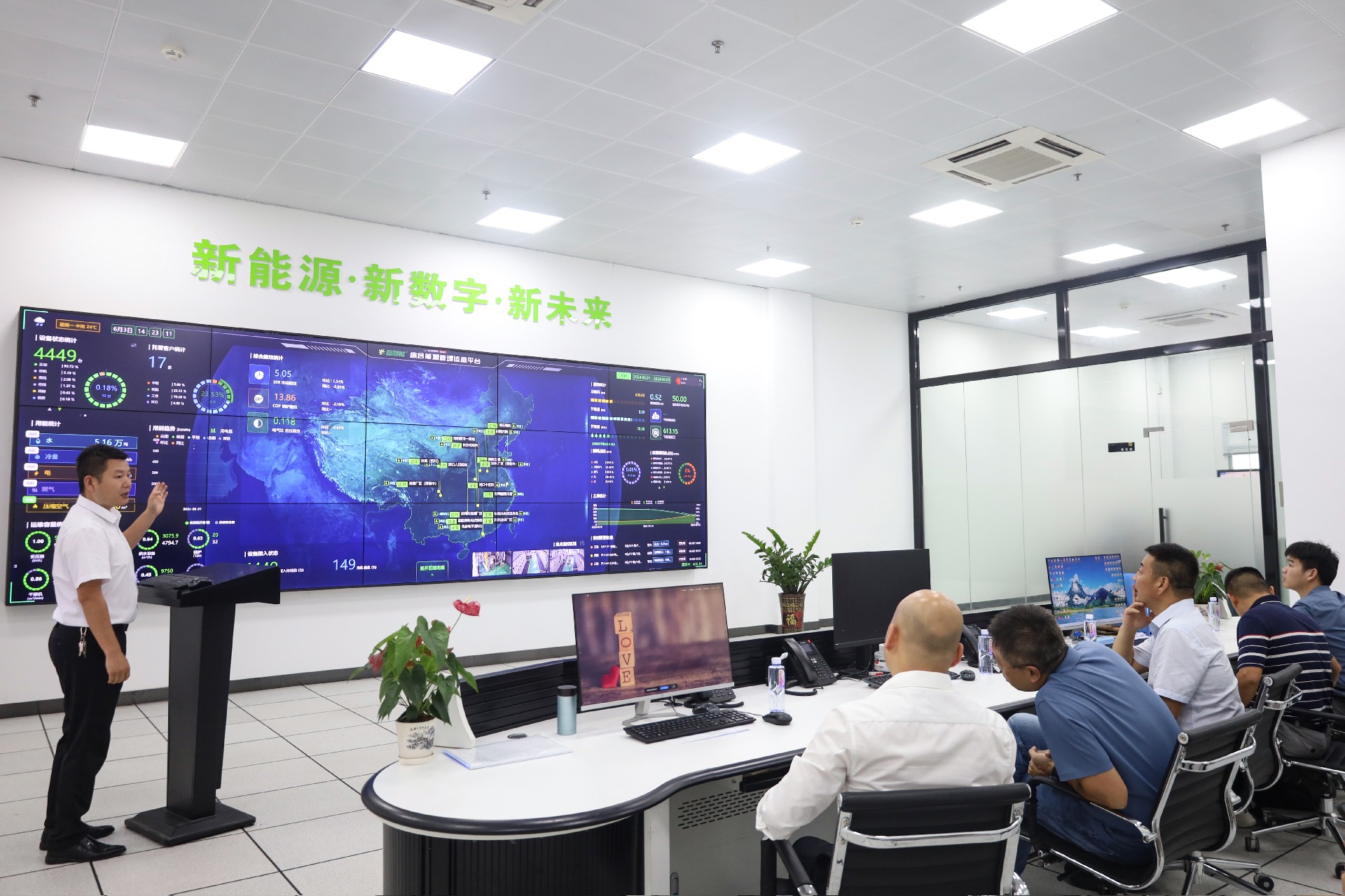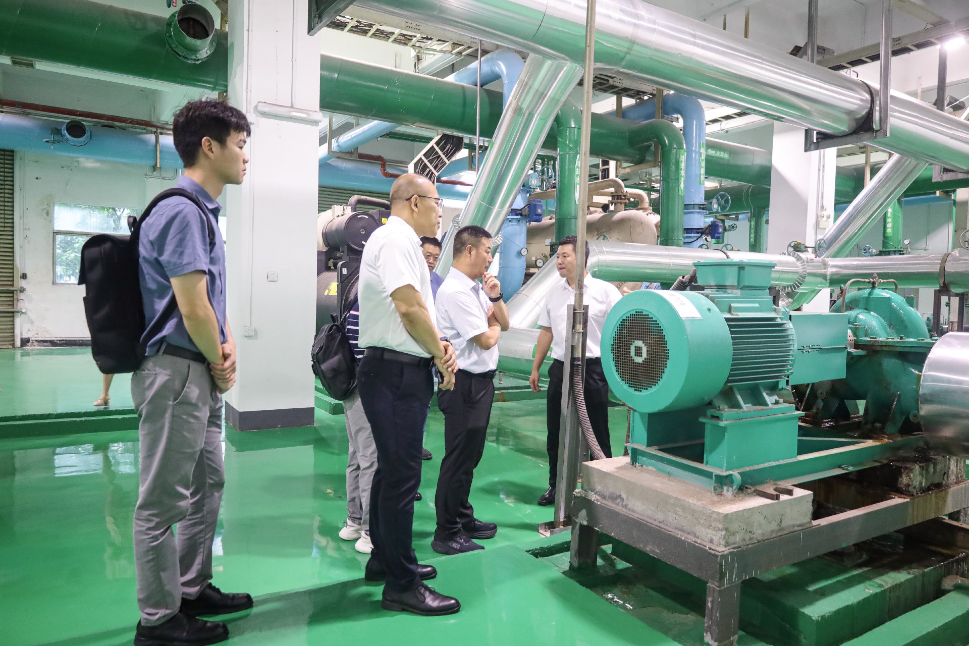 劉總一行在賈總監(jiān)的陪同下參觀了園區(qū)“富慧能”智慧綜合能源管理運維平臺、高低壓配電機房、空調機房,現(xiàn)場,劉總圍繞平臺管理的運維模式、節(jié)能降耗解決方案等與富能資深能源服務專家展開討論。