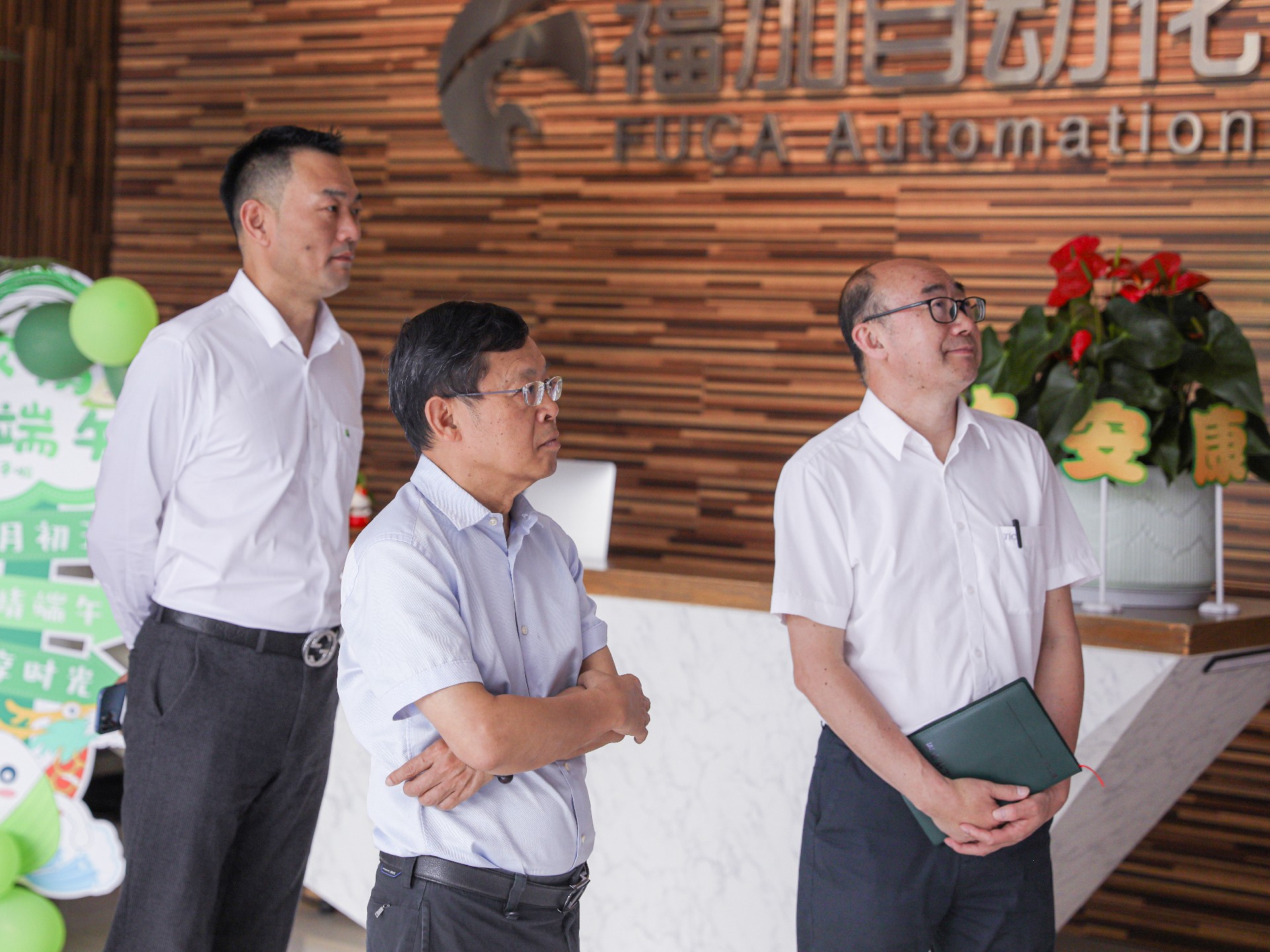 天加環(huán)境首席運營官吳小泉、市場服務中心總監(jiān)梁路軍,途優(yōu)環(huán)境總經理江京國、技術總監(jiān)劉一民,福加自動化銷售服務中心總監(jiān)劉守超對莊董一行進行熱情接待。