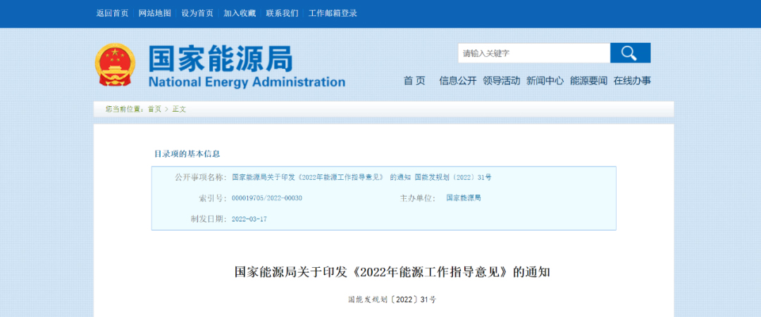 3月29日,國家能源局印發(fā)關(guān)于《2022年能源工作指導(dǎo)意見》(以下簡稱《意見》)的通知。