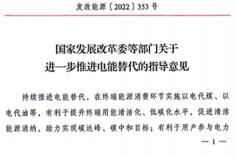 3月9日,國家發(fā)展改革委、國家能源局、工業(yè)和信息化部、財政部、生態(tài)環(huán)境部、住房城鄉(xiāng)建設(shè)部、交通運輸部、農(nóng)業(yè)農(nóng)村部、國家機關(guān)事務(wù)管理局、中國民用航空局等10部門聯(lián)合印發(fā)《關(guān)于進一步推進電能替代的指導(dǎo)意見》。