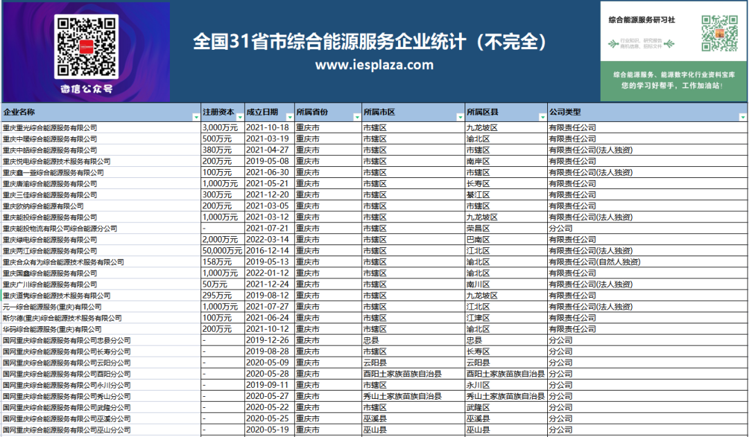 全國31省市綜合能源服務(wù)企業(yè)統(tǒng)計,共1418家