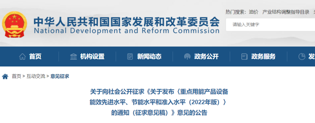 7月21日,國家發(fā)展改革委發(fā)布關(guān)于向社會(huì)公開征求《關(guān)于發(fā)布〈重點(diǎn)用能產(chǎn)品設(shè)備能效先進(jìn)水平、節(jié)能水平和準(zhǔn)入水平(2022年版)〉的通知(征求意見稿)》意見的公告,旨在為提升重點(diǎn)用能產(chǎn)品設(shè)備能效水平,引導(dǎo)生產(chǎn)者提升技術(shù)工藝水平、督促使用者加快淘汰落后設(shè)備,鼓勵(lì)消費(fèi)者擴(kuò)大綠色產(chǎn)品消費(fèi)。